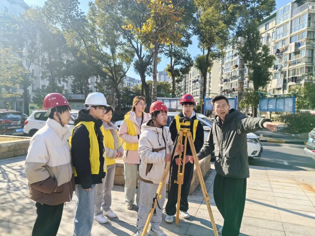 建筑工程学院师生针对绿杨新苑小区部分路面年久失修、坑洼不平的问题,带来专业解决方案。在带队老师指导下,同学们分组携带激光测距仪、水准仪等专业设备,对重点破损路面精准测绘、采集数据,详细记录路面长宽、坡度等信息,分析基层状况并现场研讨,根据居民出行安全的考量给出修补方案。一位大一学生感慨:“以前在学校操作仪器,数据是冰冷的;如今每毫米测量都关乎老人散步、孩童奔跑的安全,这份责任感沉甸甸的。”