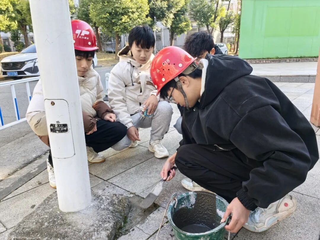 数据采集分析完成后,同学们在老师示范与安全保障下开展路面修补实操,依次完成清理基面、搅拌水泥、填补压实等工序。寒冬里劳动现场热火朝天,师生严谨把控每道工序质量。这堂 “流动的施工课”,既锻炼了同学们的实践能力与工程思维,更让他们领悟到工程技术服务人民的核心价值。
